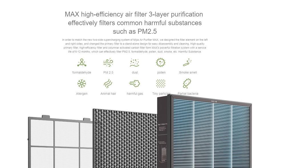 - ชั้นกรอง 3 ชั้น ที่สามารถกรองฝุ่นที่มีขนาดเล็กกว่า 2.5 ไมครอนได้มากถึง 99.99% และกรองสาร Formaldehyde ได้